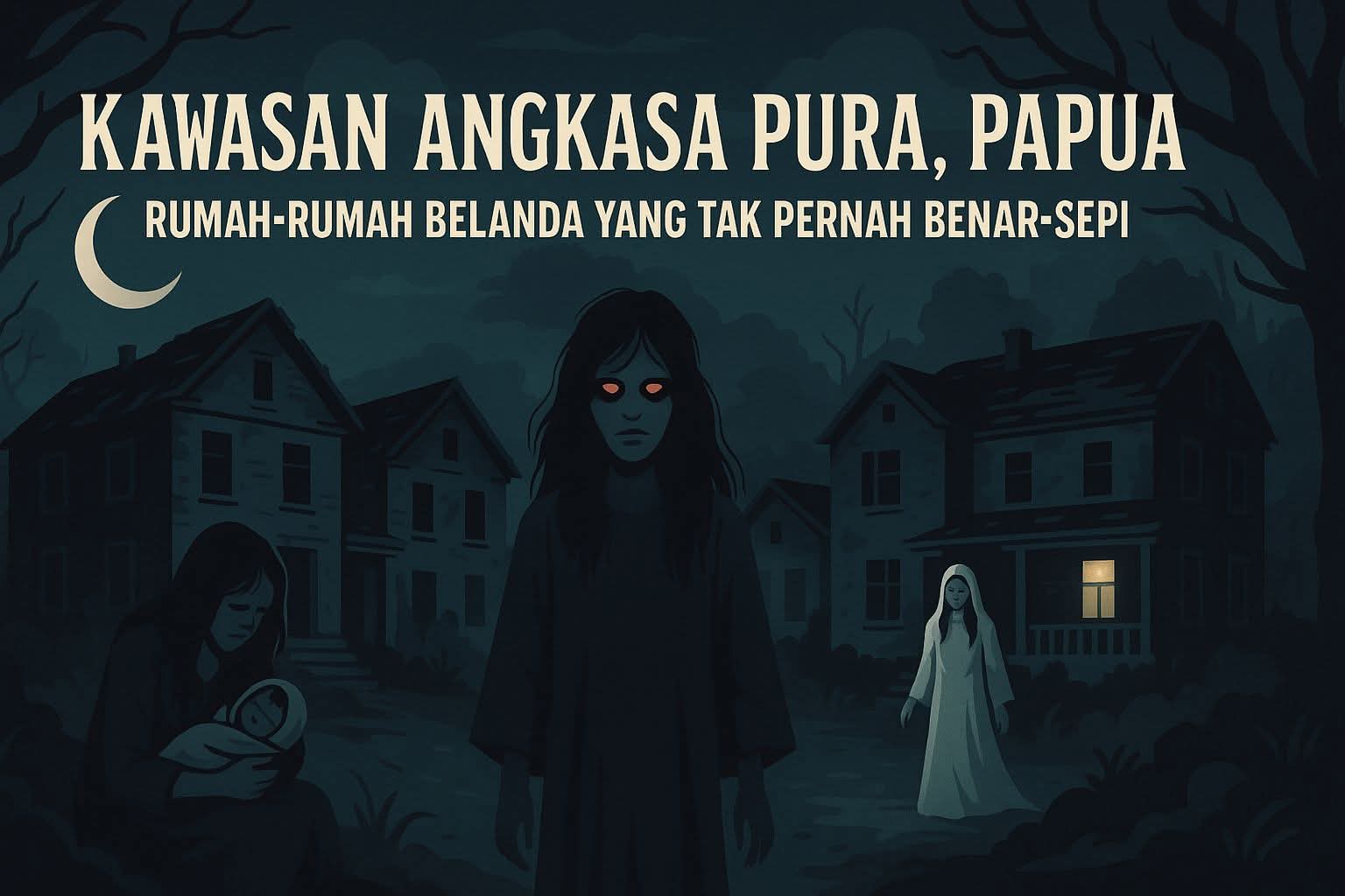 Langit Papua yang biasanya tenang malam itu terasa berbeda begitu kendaraan tim kami memasuki Kawasan Angkasa Pura, sekitar 100 km dari pusat kota. Dari kejauhan, empat bangunan peninggalan Belanda tampak berdiri kaku seperti menunggu kedatangan siapa saja yang berani mendekat. Warga setempat menyebutnya sebagai “Rumah Hantu Angkasa Pura.”